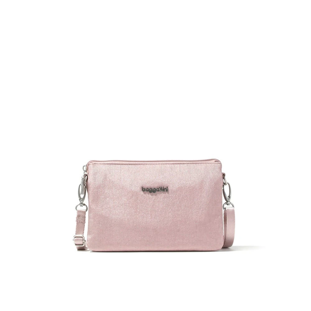 Inspired by original Only Bag from the early days of Baggallini, this mini crossbody bag features three separate sections that make up one complete, compact bag. Wearable as both a mini crossbody bag or a wristlet, this sleek style is a must for on-the-go organization! And no matter where the day leads, RFID-protected card slots promise peace of mind as they safeguard your personal info.