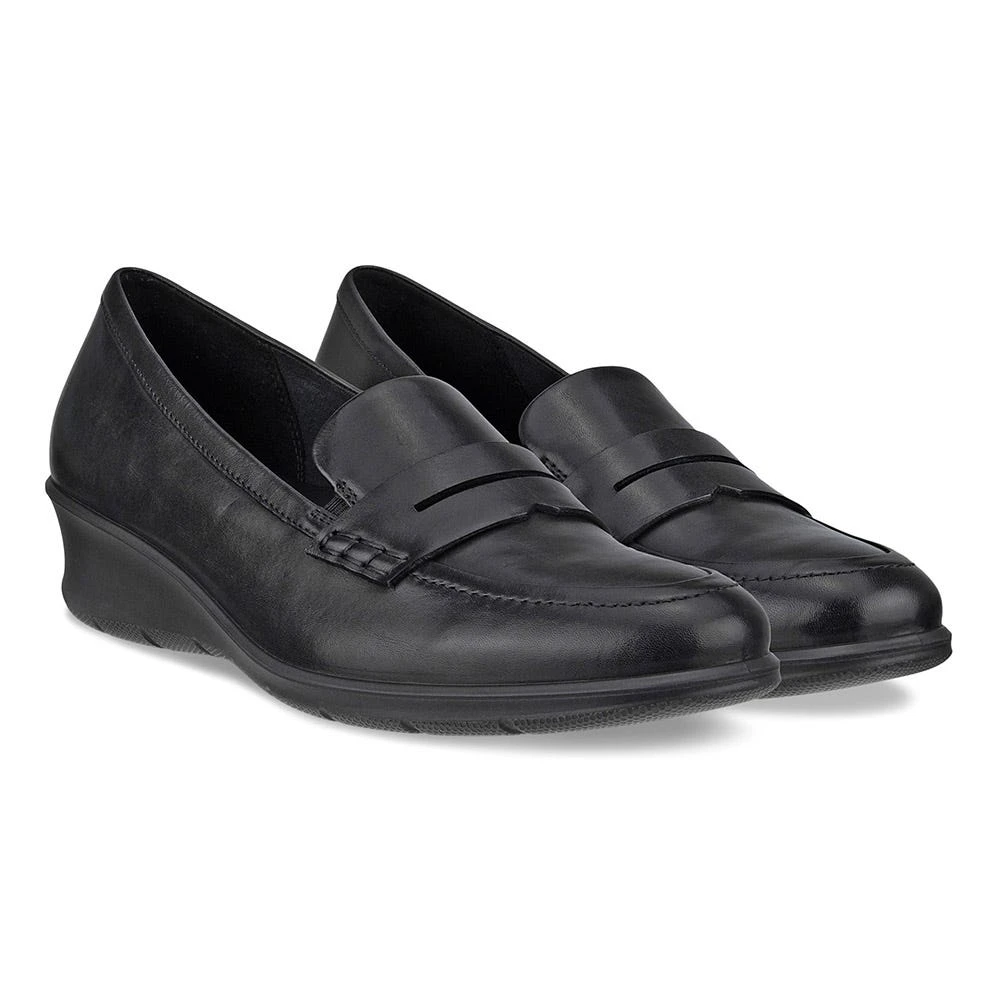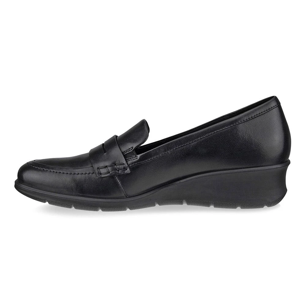 ECCO FELICIA is a contemporary take on the classic penny loafers with added finesse from the wedge heels. These timeless loafers feature a flexible, lightweight, wedge sole with exceptional arch support. The feminine outsoles with ECCO FLUIDFORM™ absorb impact and distribute weight for consistent, stable comfort. Wedge heels give a subtle lift that helps give your legs an elongated appearance. This refined yet casual shoe will elevate any look from dresses to your favourite pair of jeans, all year long.