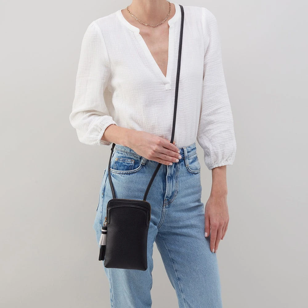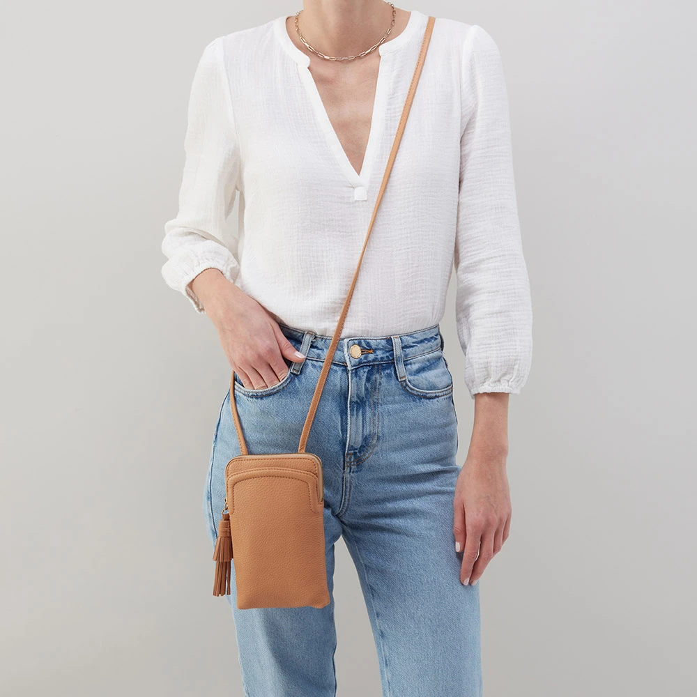 A leather phone crossbody. Nila Phone Crossbody has room for your phone. slots for your most-used credit cards and a leather tassel zipper pull for added style and function.